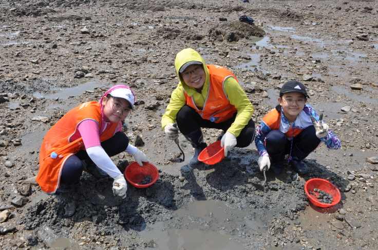 바닷가에 버려진 쓰레기를 줍는 봉사활동과 바지락 캐기, 맨손 고기집이등 갯벌체험을 하였습니다.