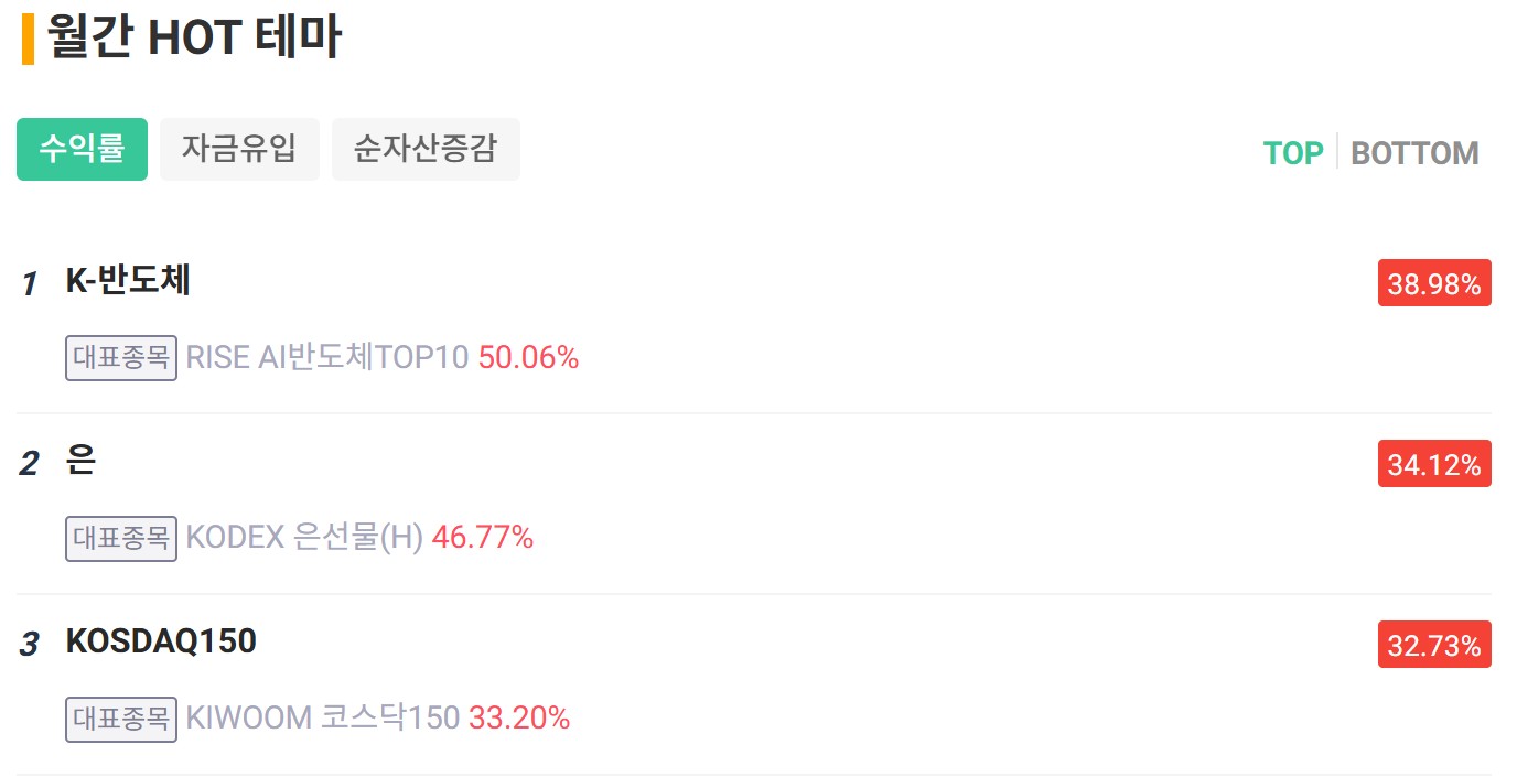 ◎ 핫 테마는 ‘K-반도체, 은, KOSDAQ150’